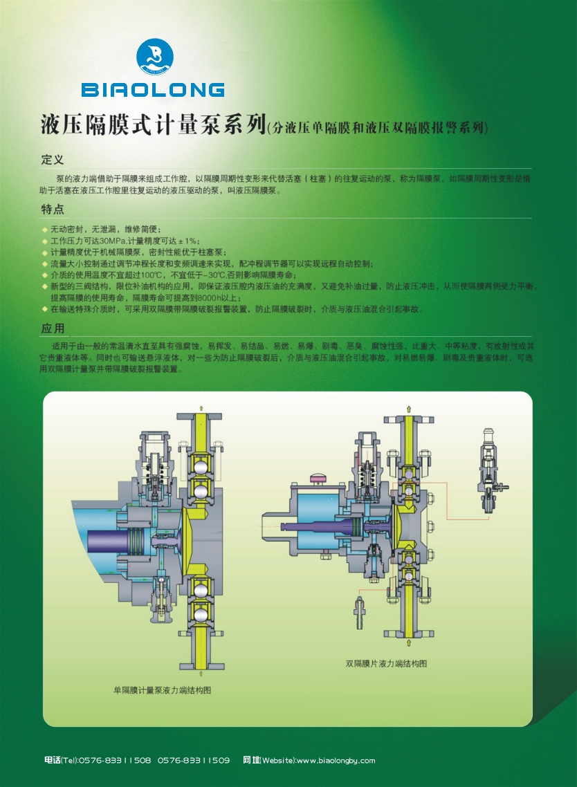 液壓(ya)隔膜計量泵也叫(jiào)柱塞隔膜計量泵(bèng),是結合柱塞式計(ji)🔴量泵和隔膜式計(jì)量泵的特點而設(shè)計的一種計量泵(bèng)。該計量泵與被計(jì)量介質介質接觸(chu)部分🙇🏻為隔膜,而驅(qū)動部分為🤩液壓柱(zhù)塞。由于隔膜根據(jù)被計量介質的不(bú)同可選用不同🐕的(de)材質,如海波隆(CSM)、氟(fu)化橡膠(FPM)、泰氟隆(PTFE)等(děng),而液壓🌈驅動可實(shí)現高壓計量的🚩需(xū)要,所以柱塞隔膜(mó)計量泵的使用領(ling)域和工礦壓力大(da)大提高。