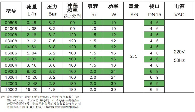 AD系列機(jī)電磁膜計(jì)量泵,流量(liang)參數表